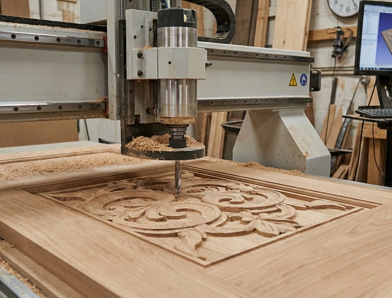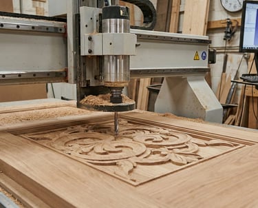 Custom 3D carving and precision cutting for Wood, MDF, HDHMR, WPC, and Cement Sheets. Quality finishes for doors, wall panels, and decorative screens.